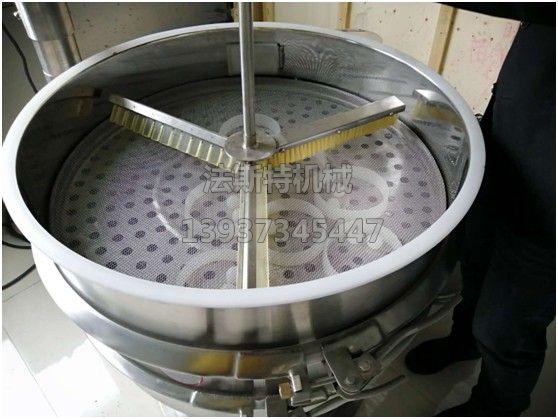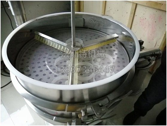 例如在面粉篩分中,有些細(xì)渣子卡在網(wǎng)孔中,在刮板旋轉(zhuǎn)推動(dòng)的作用下,可以將雜質(zhì)推向出料口,自動(dòng)排出,減少了堵網(wǎng)的發(fā)生;在固液分離作業(yè)中,能把各類漿液中的非溶性物質(zhì)迅速地清除從出料口排出,防止堵網(wǎng),提高篩分效率。