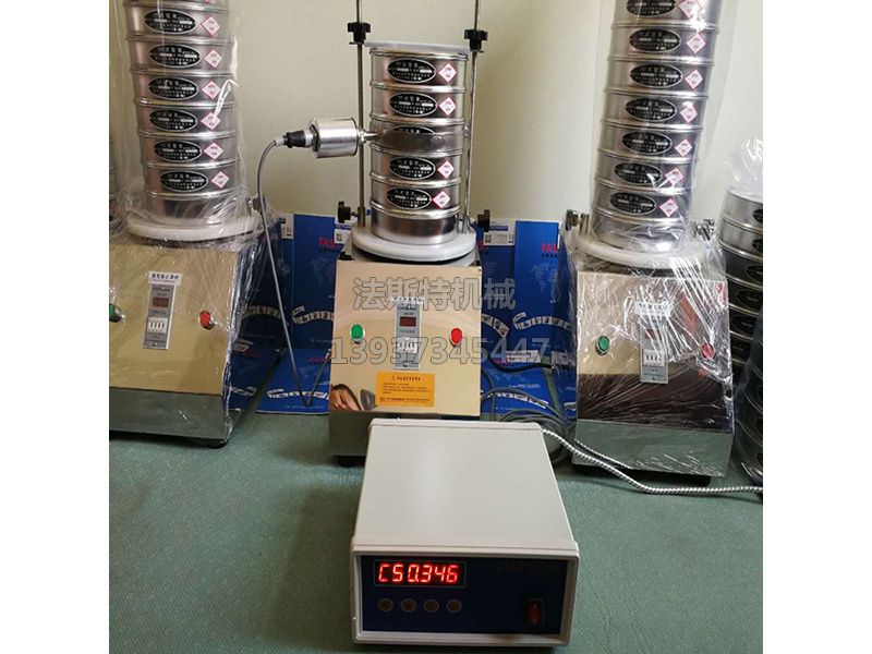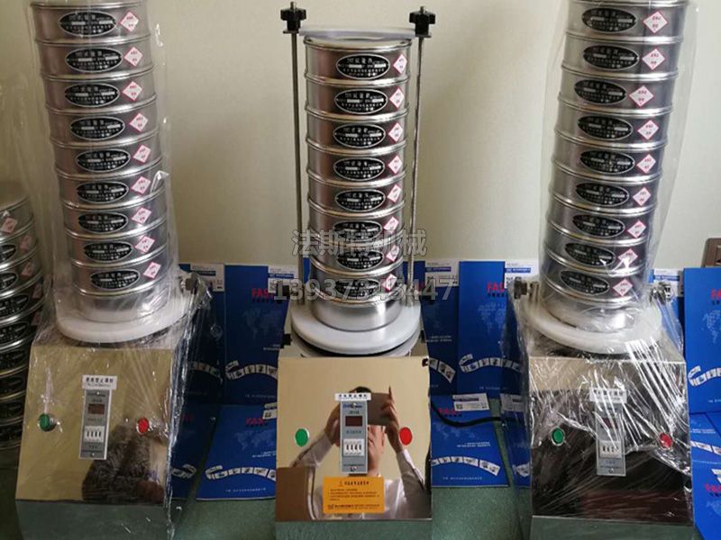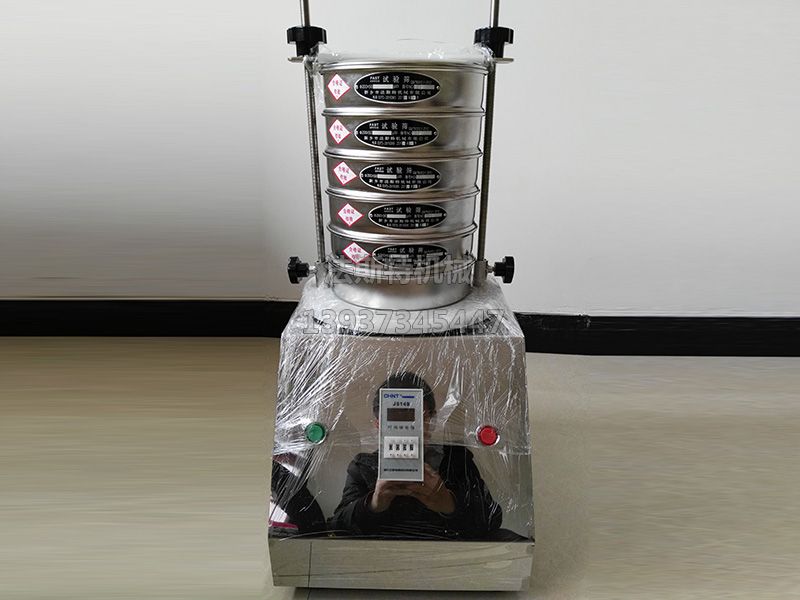 試驗振動篩通過振動電機帶動上部振動盤振動,再通過振動盤傳導(dǎo)至按放在振動盤上部的國標試驗篩框,然后,把小于篩框孔徑的物料篩分至下層篩框,如此層層篩選,使每層試驗篩內(nèi)留下相同粒度的物料,達到不同粒度的分離分選,并確定此物料的粒度組成。