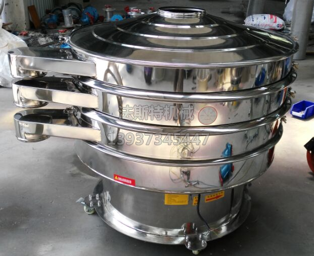 食品振動(dòng)篩(學(xué)名三次元振動(dòng)篩分·過濾機(jī))是一種高精度篩分設(shè)備,可以單層粉末除雜、也可多層粒度分級(jí)、也可固液分離過濾使用,適用于粒、粉、液體等物料的篩分和過濾,是一機(jī)多用的通用篩選設(shè)備。