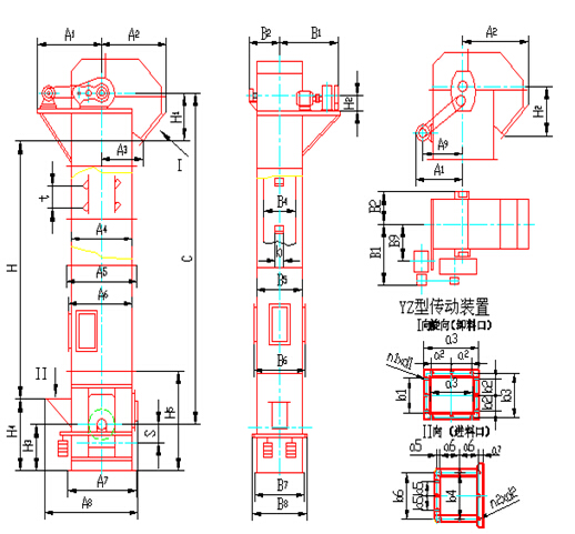 TH型斗式提升機(jī)結(jié)構(gòu)型式圖如下