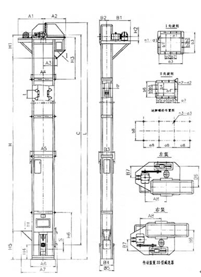 (四)TD型皮帶式斗式提升機(jī)外形及安裝尺寸: