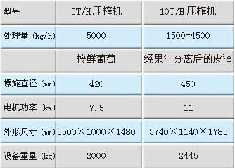 壓榨機為雙螺旋,螺旋方向相反,對物料的壓榨力大而均勻,出渣口錐形體由夜壓缸,調節(jié)油壓可改變對物料的施壓效果,調整出汁率,其效果因物料不同會有一定差別。與物料接觸部分采用不銹鋼制造。5噸/時壓榨機為雙螺旋轉,旋轉方向相反,對物料的壓榨力大而均勻,出渣口錐形體由液壓缸控制,調節(jié)油壓可改變對物料的施壓效果,調整出汁率,本機還可用于其它物料的固液分離,其效果因物料品質不同有一定的差別。與物料接觸部位采用不銹鋼制造。10噸/時壓榨機為低速螺旋間隙傳動,從而在壓榨過程中具有靜態(tài)提汁和動態(tài)提汁的雙重效果。采用調節(jié)油壓調節(jié)出渣壓板對皮渣的施壓取汁,保證果汁的質量和出汁率。